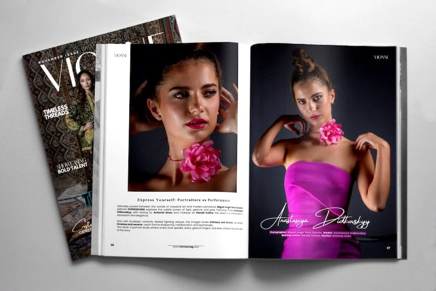 Delicately poised between the worlds of classical art and modern portraiture, Miguel Angel Peris Sorolla’s editorial EXPRESSIONS explores the subtle power of light, gesture, and gaze. Featuring model Anastasiya Didkovskyy, with styling by Antonia Grau and makeup by Gerald Colina, this series is a masterclass in expression and elegance.