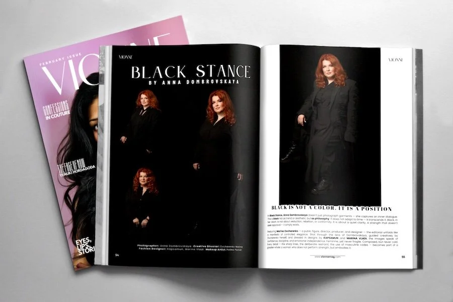 In Black Stance, Anna Dombrovskaya doesn’t just photograph garments — she captures an inner dialogue. This is black not as trend or aesthetic, but as philosophy. It does not adapt to time — it transcends it. Black, in her vision, is not about seduction, rebellion, or conformity. It is about a quiet clarity. A strength that doesn’t seek approval — it simply exists.
