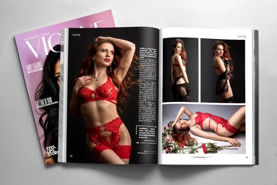 VIONNE: Lingerie plays a powerful role in this shoot. How does wearing something intimate or daring influence your confidence and mindset during a shoot?